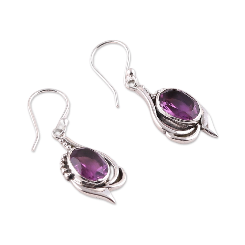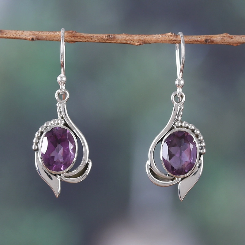 Wholesale 925 Sterling Silver Purple Amethyst Gemstone Earrings Handmade Christian Charm Drop Dangle Gift for Her