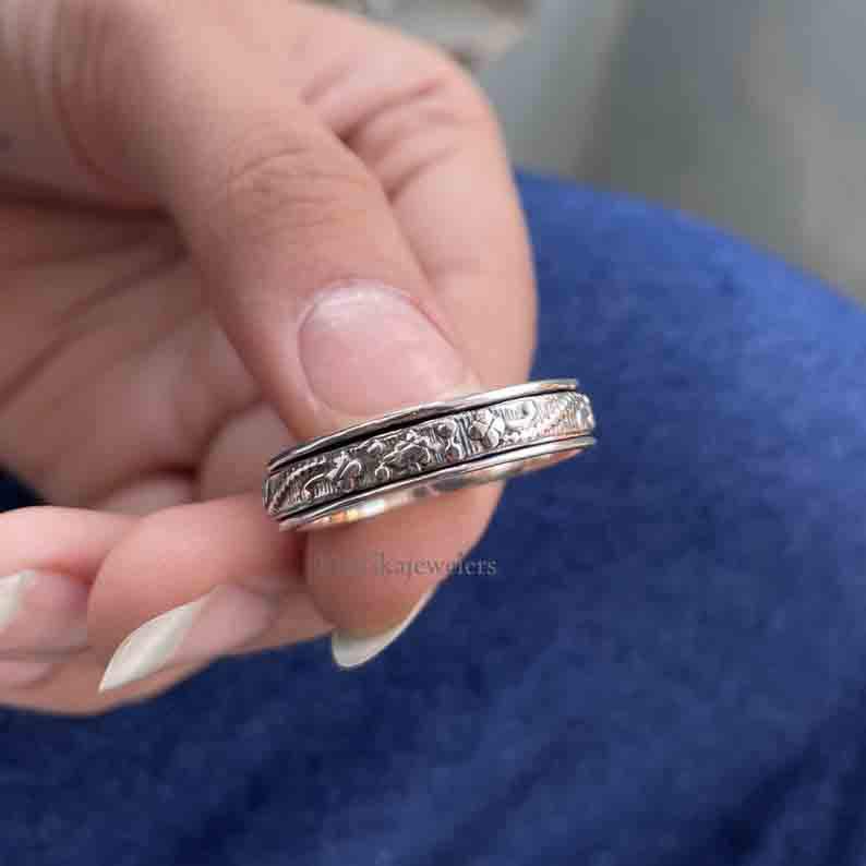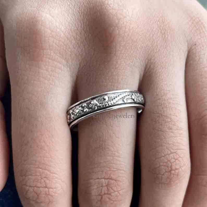 Wholesale Classic Bezel Setting Inlay Spinner Ring 925 Sterling Silver Fidget Band for Anxiety Meditation for Weddings Parties