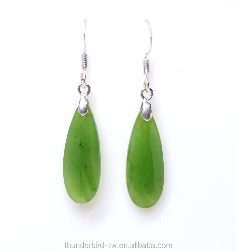 Wholesale 925 Sterling Silver Tear Drop Natural Genuine Green Jade Nephrite Jewelry Hook Pendant Earring