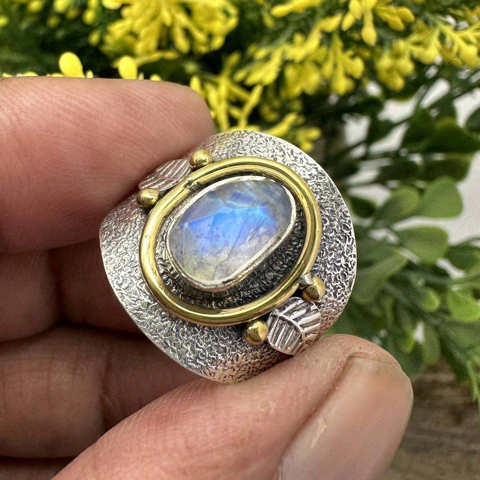 picture:Rose Cut Moonstone 925 Sterling Silver Ring