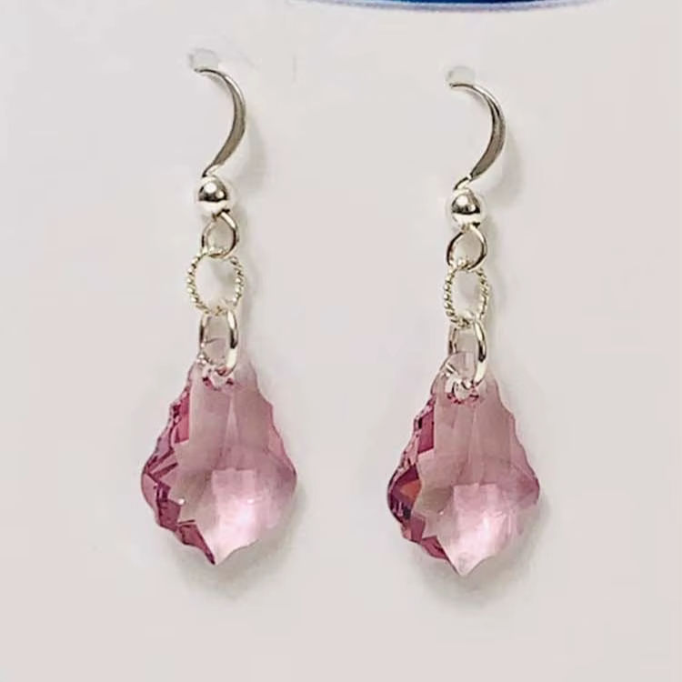 Wholesale 925 Sterling Silver Vintage Dangle Earrings 15mm Fancy Shape Natural Pink Quartz Stone Women's Engagement Jewelry