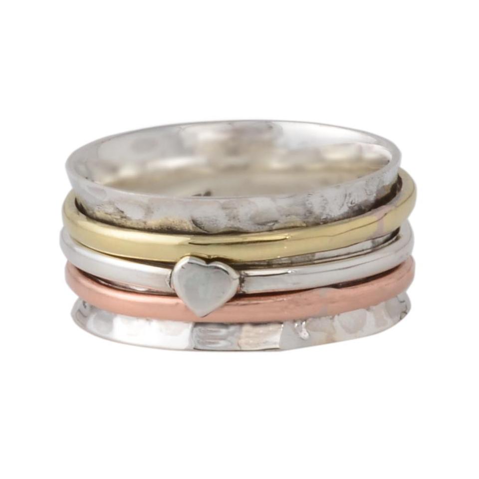 Wholesale 925 Sterling Silver Wide 3-Tone Heart Spinner Rings Handmade Statement Jewelry for Wedding Party Anniversary