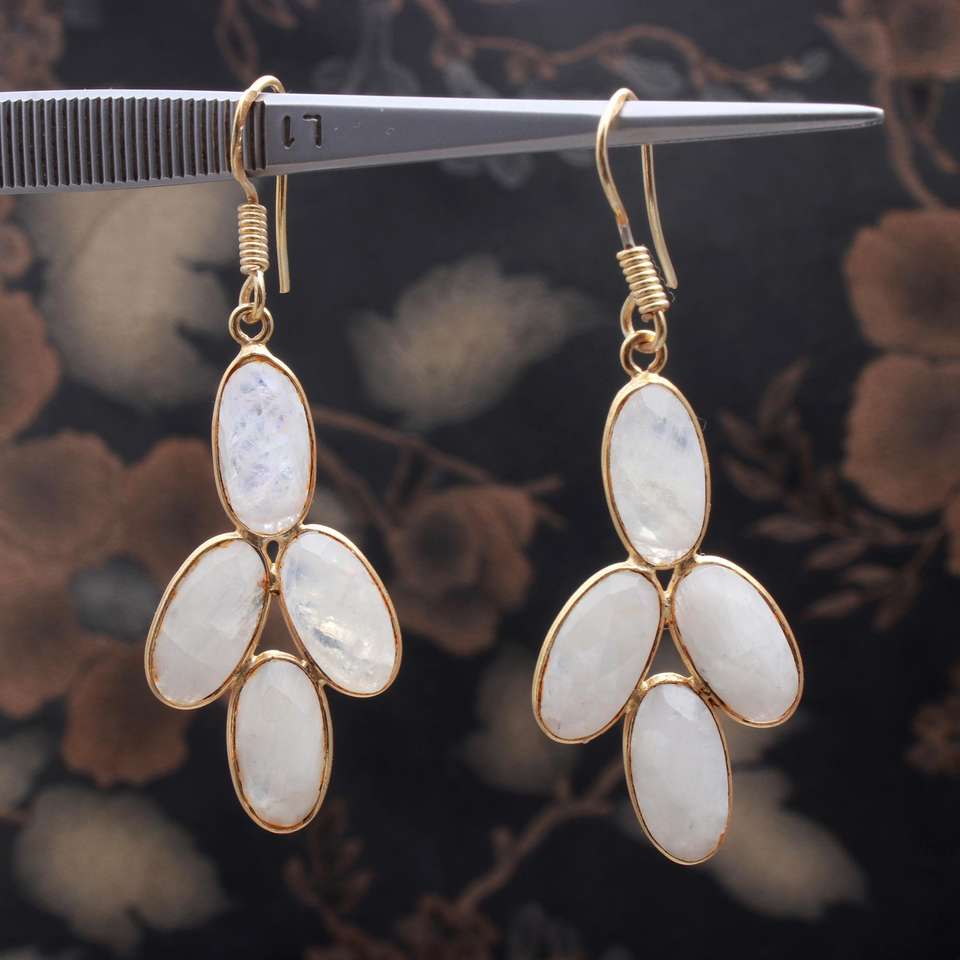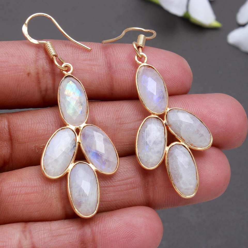 Wholesale 925 Sterling Silver Women's Handmade Stone Earrings 8X14MM Rainbow Moonstone Long Dangling Oval Drop Shape