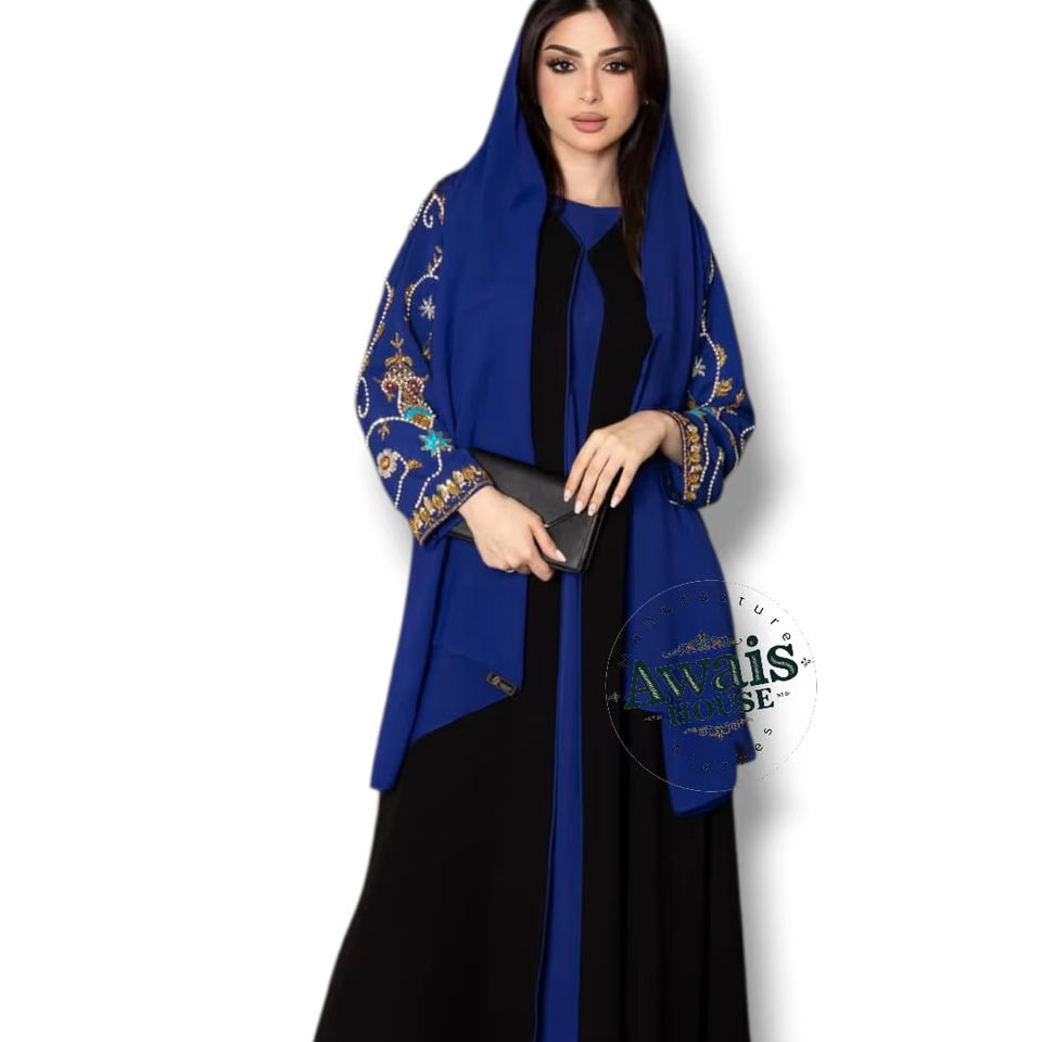 Wholesale AWAIS HOUSE Luxury 2-Piece Set Muslim Women Modest Simple Solid Velvet Beaded Washable Robe Floor-Length A-Line