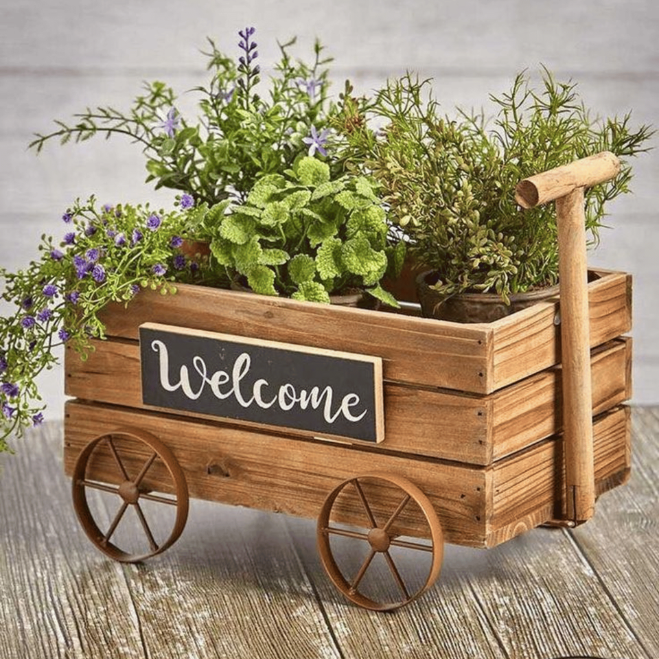 Wholesale Acacia Wood Planter Cart for Flowers Outdoor Planter Garden Decor Home Decor From Vietnam Factory