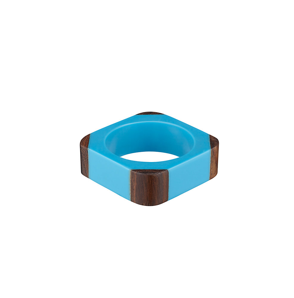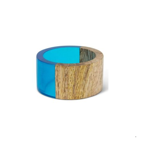 Wholesale Acacia Wood and Resin Napkin Ring Holder for Sky Blue Color for Kitchenware and Restaurants Use Decorative