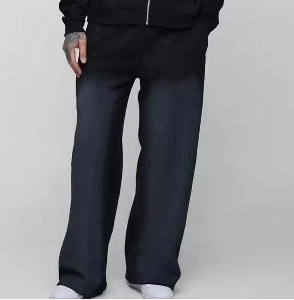 Wholesale Acid Wash Solid Streetwear Tracksuit Set for Sweatpants Zip Hoodie Breathable 100% Cotton Jogging Gear Flared