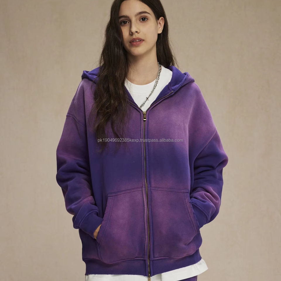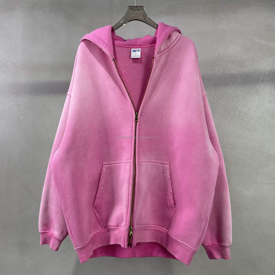 Wholesale Acid Washed Distressed Cotton Fleece Quality Men's Hoodie Custom Oversized Streetwear Sun Faded Zip up Hoodie