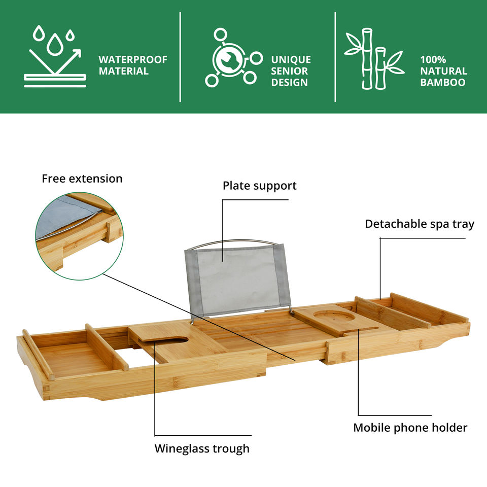 Wholesale Adjustable Expandable Spa Tray Luxury Natural Bamboo Bathtub Tray Bath Tub Caddy Rack for Bathroom