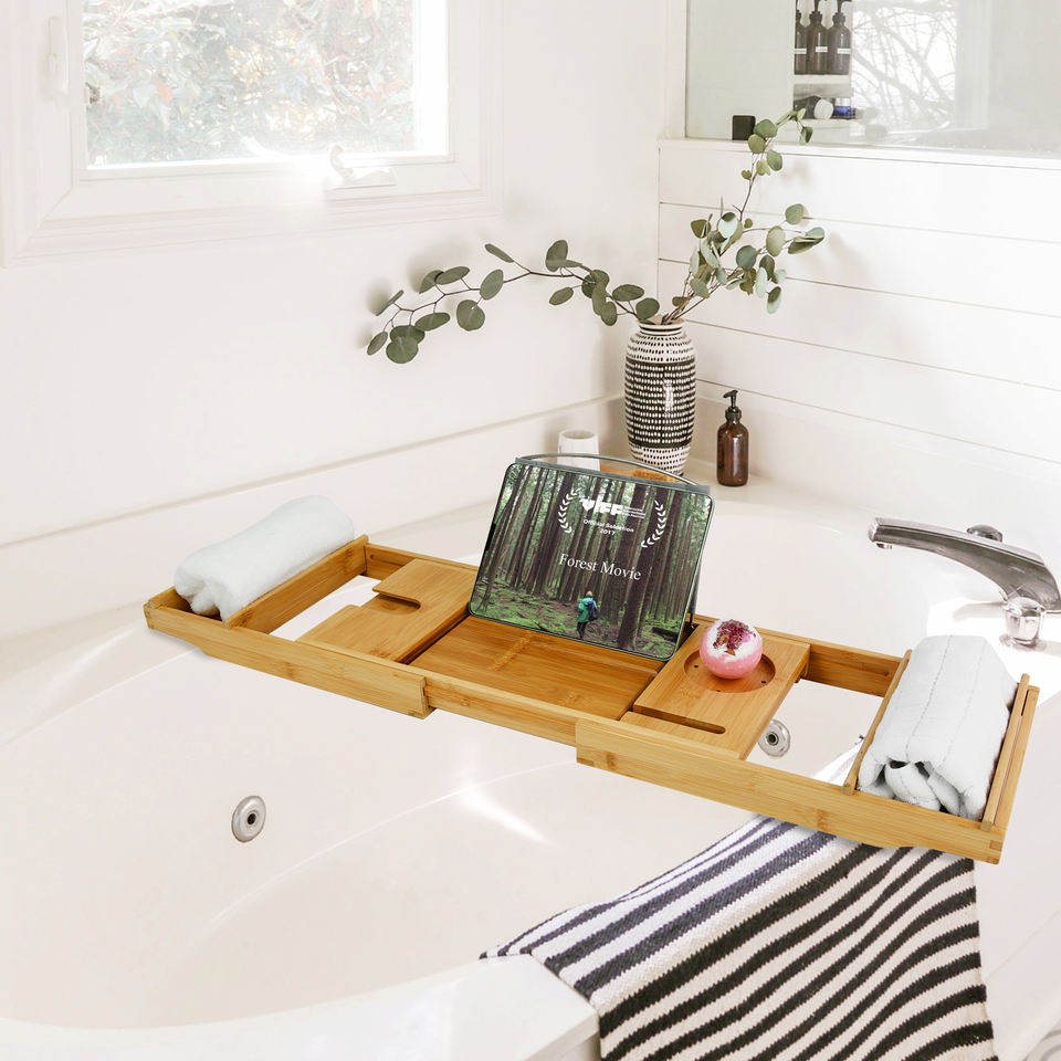 Bamboo Foldable Bath Caddy Tray