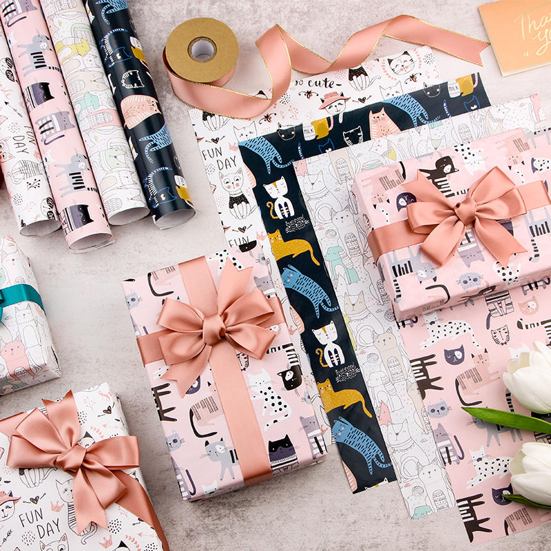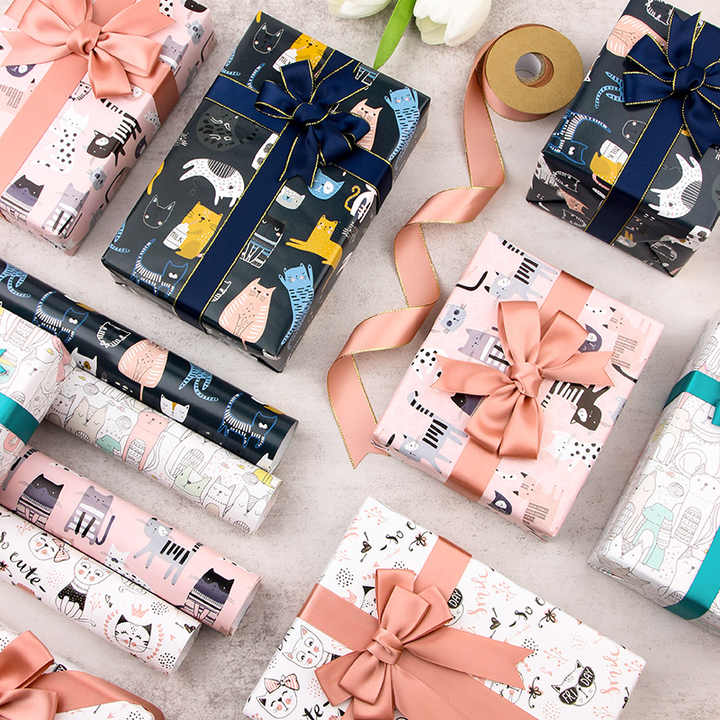 Wholesale Adorable Glossy Birthday Paper Cute Animal Prints Wrapping Paper Roll