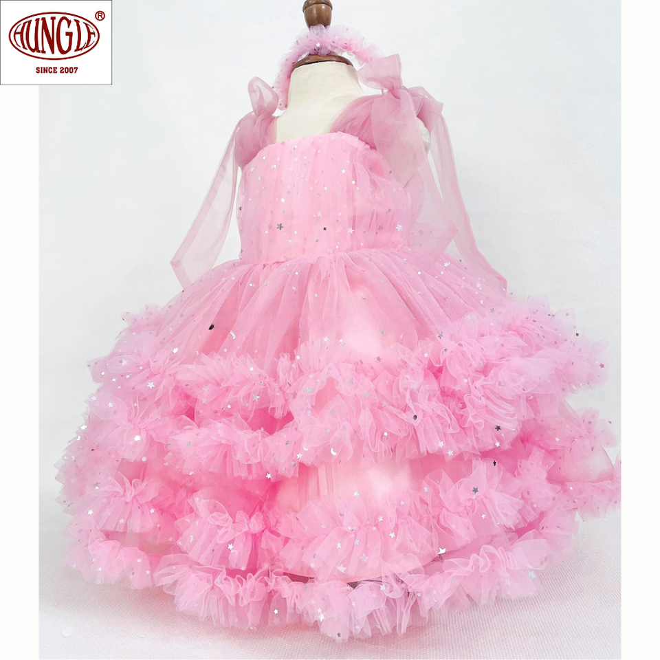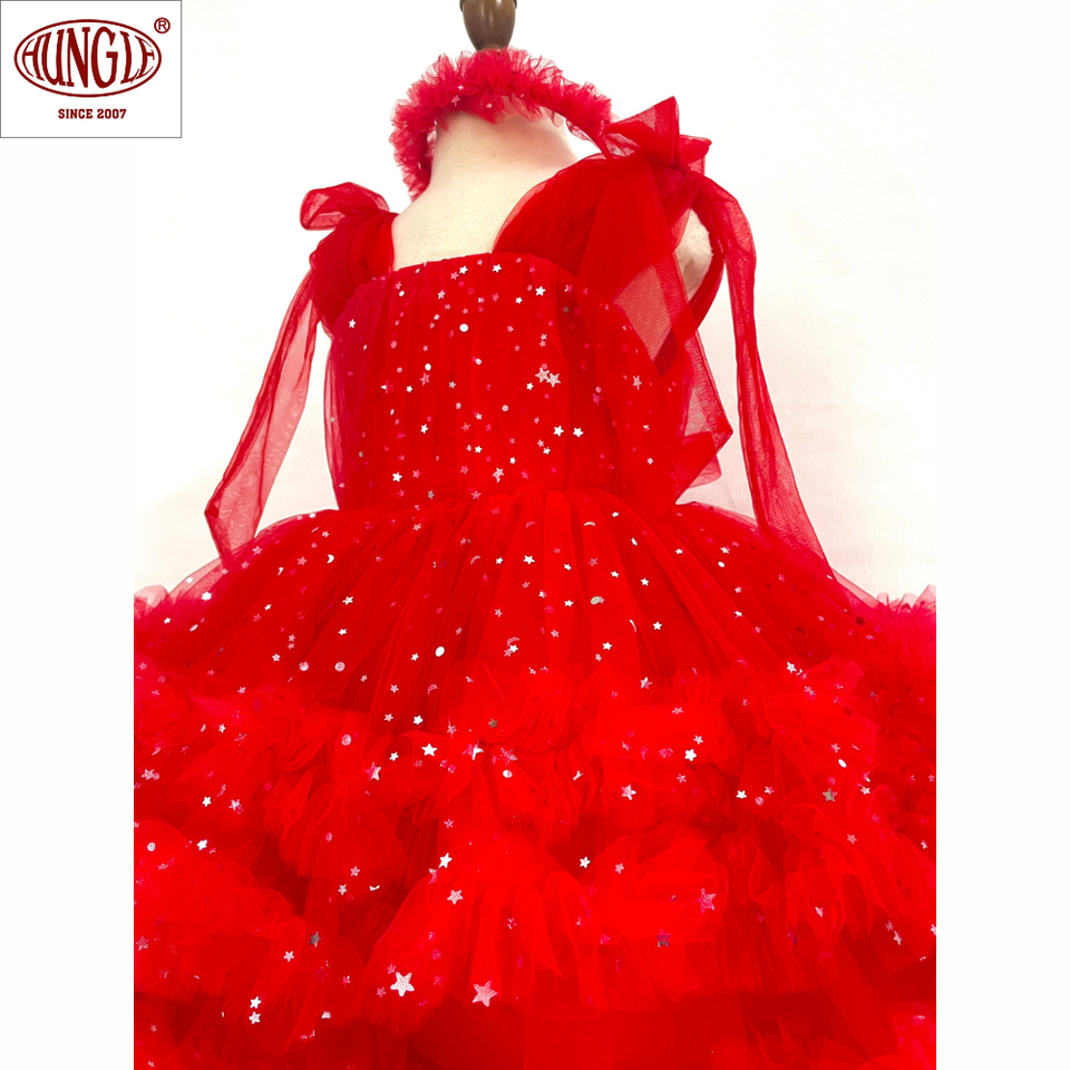 Wholesale Adorable Knee-Length Baby Christmas Eve Dress with Headband Layered Silhouette