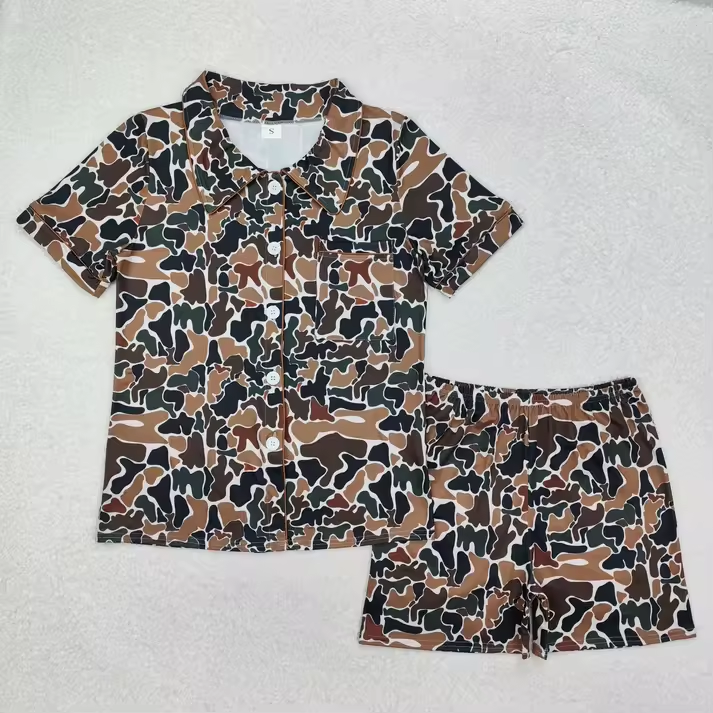 Wholesale Adult 2Pcs Casual Soft Pajamas Sets Short Sleeve Camo Duck Print Button T Shirt Shorts Outfit Women's Loungewear