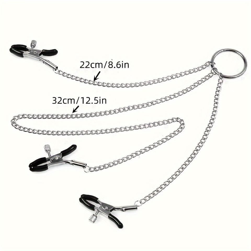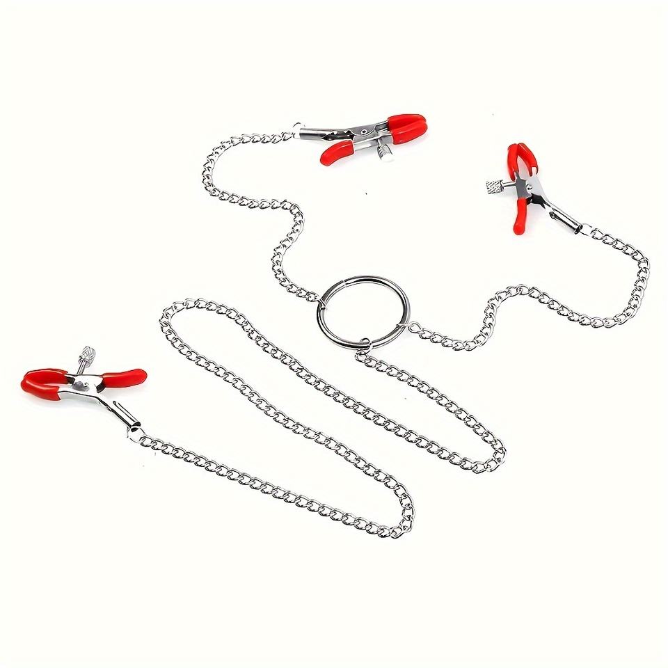 Wholesale Alfa Brand SM/BDSM Three-Headed Red Black Metal Chain Nipple Clips Breast Clamps Sexy Fun