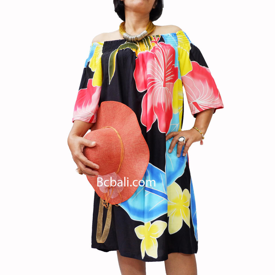 Wholesale Alot Daily Clothing Women Fashion Poncho Dress Rayon Hand Painting with Flower Direct From Bali Batik Hand Painting