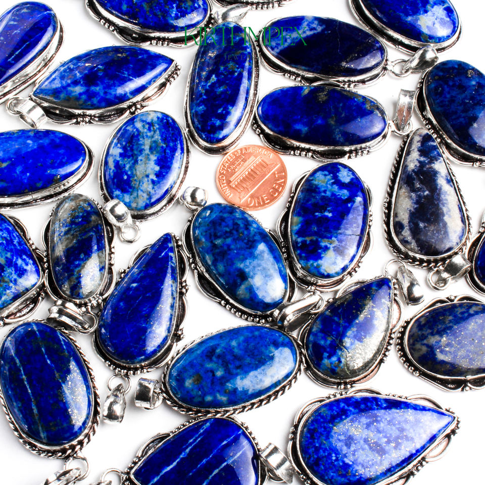 Wholesale American eBay Trending European Hot Jewelry Women's Large Lapis Lazuli Crystal Gold Plated Pearl Pendant Christian
