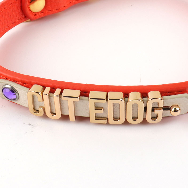 Wholesale Anti Lost Pu Leather Dog Name Collar DIY Letter Training Colla Comfort Pets Lead Pu Leather Dog Collar with Tag