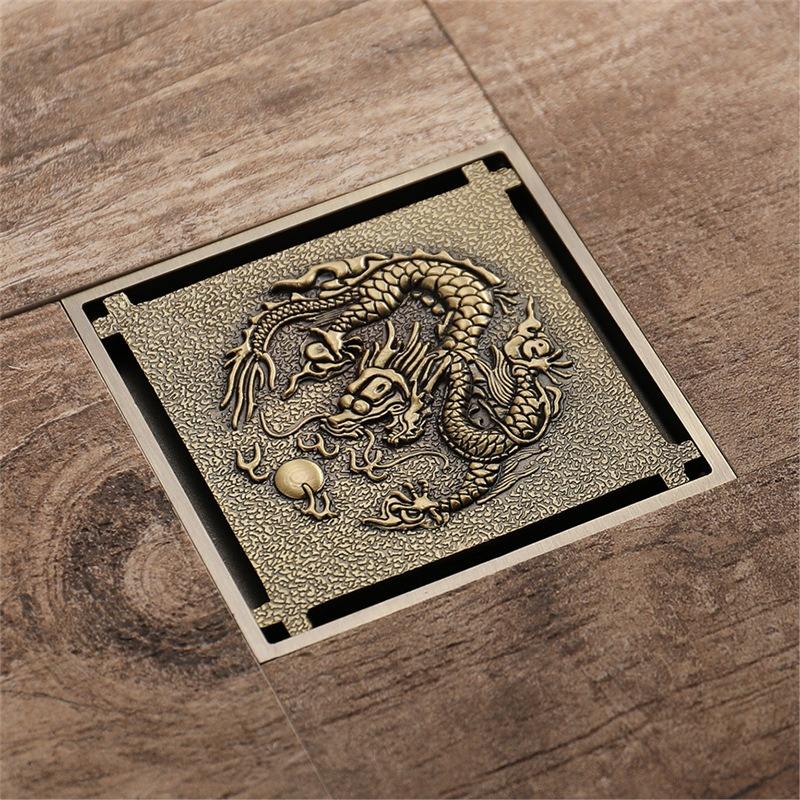 Antique Bronze Dragon Pattern Solid Brass Floor Drain Wholesale Anti-odor Tile Insert for Hotel Use