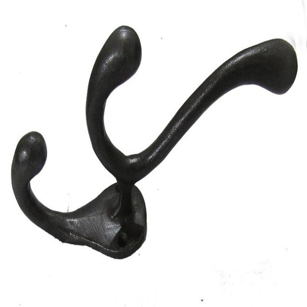 Classic Antique Iron Triple Hook Black Alloy Cast Iron Vintage Coat Rack Wall Hooks Multifunctional with Wholesome Plain Finish