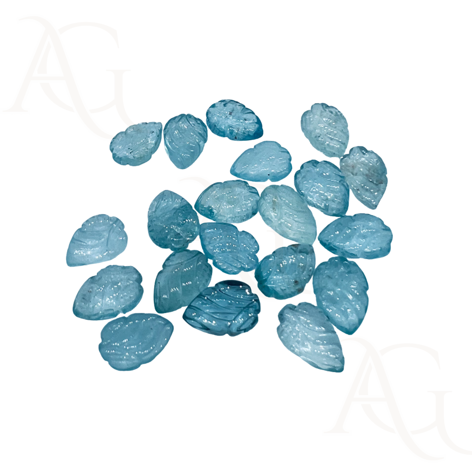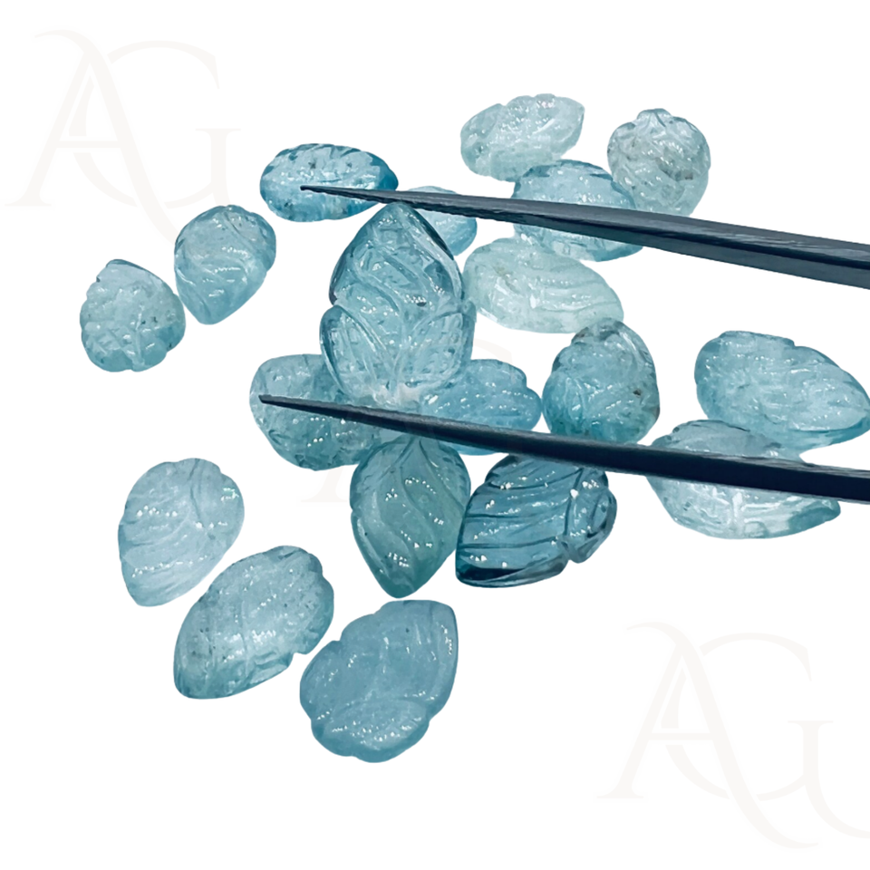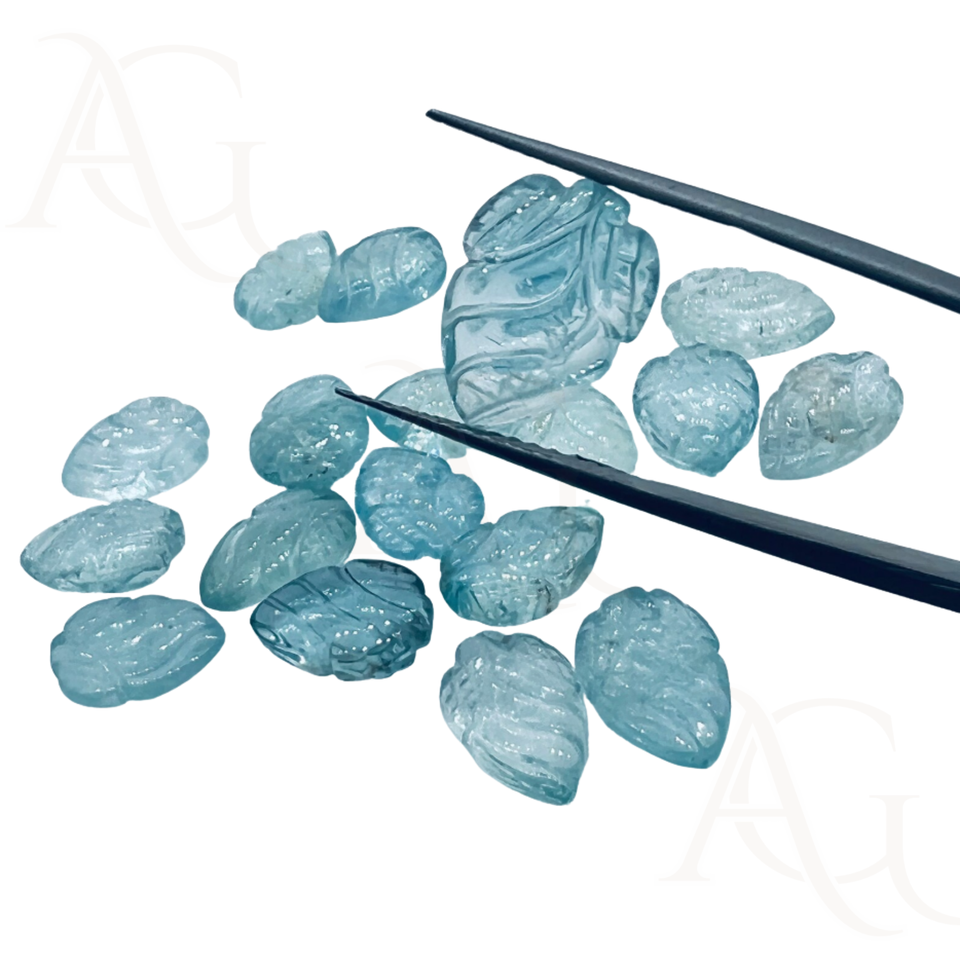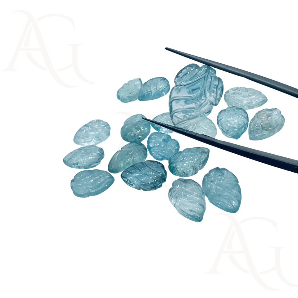 Wholesale Aquamarine Carving Leaf Shape Carving Loose Stone For Jewelry Making At Factory Price