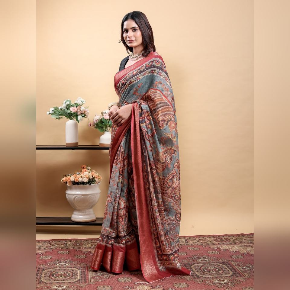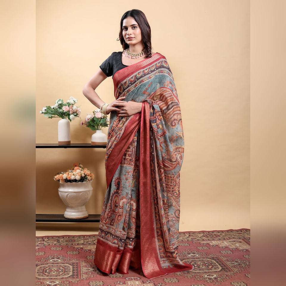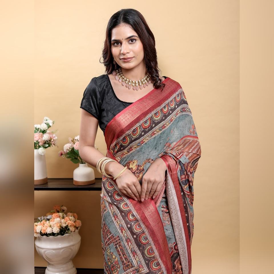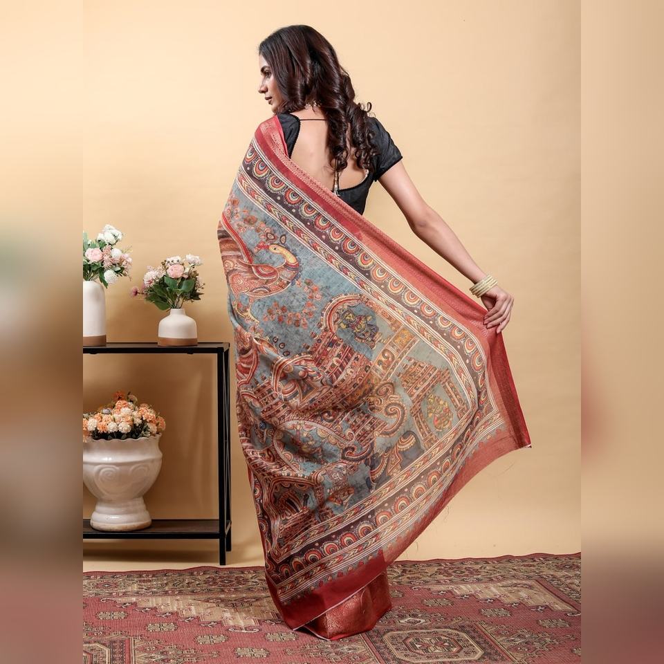 cotton , jacquard , kalamkari , linen , pattaMaterial
