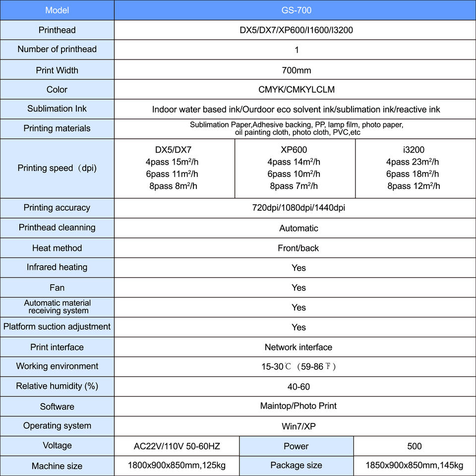 Print head:XP600, DX5, DX7