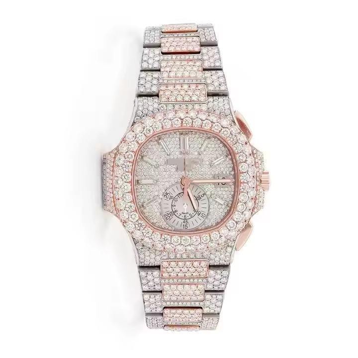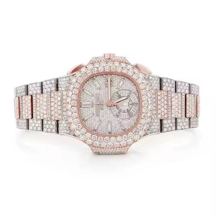Wholesale Automatic Mechanical Rose Gold Automatic Watch for Men Hip Hop Luxury VVS Color Moissanite Iced Out Watches