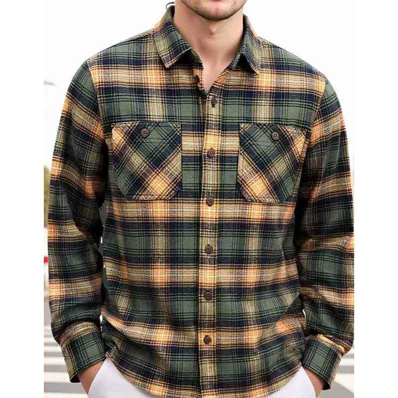 Wholesale Autumn Winter Men Casual Flannel Plaid Shirts Vintage Fleece Fitted Plaid Adult Size Fashion Cotton Flannel Shirt