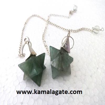 Wholesale Aventurine Agate Merkaba Pendulum Natural Green Semi-Precious Stone Gemstone with Silver Metal Chain