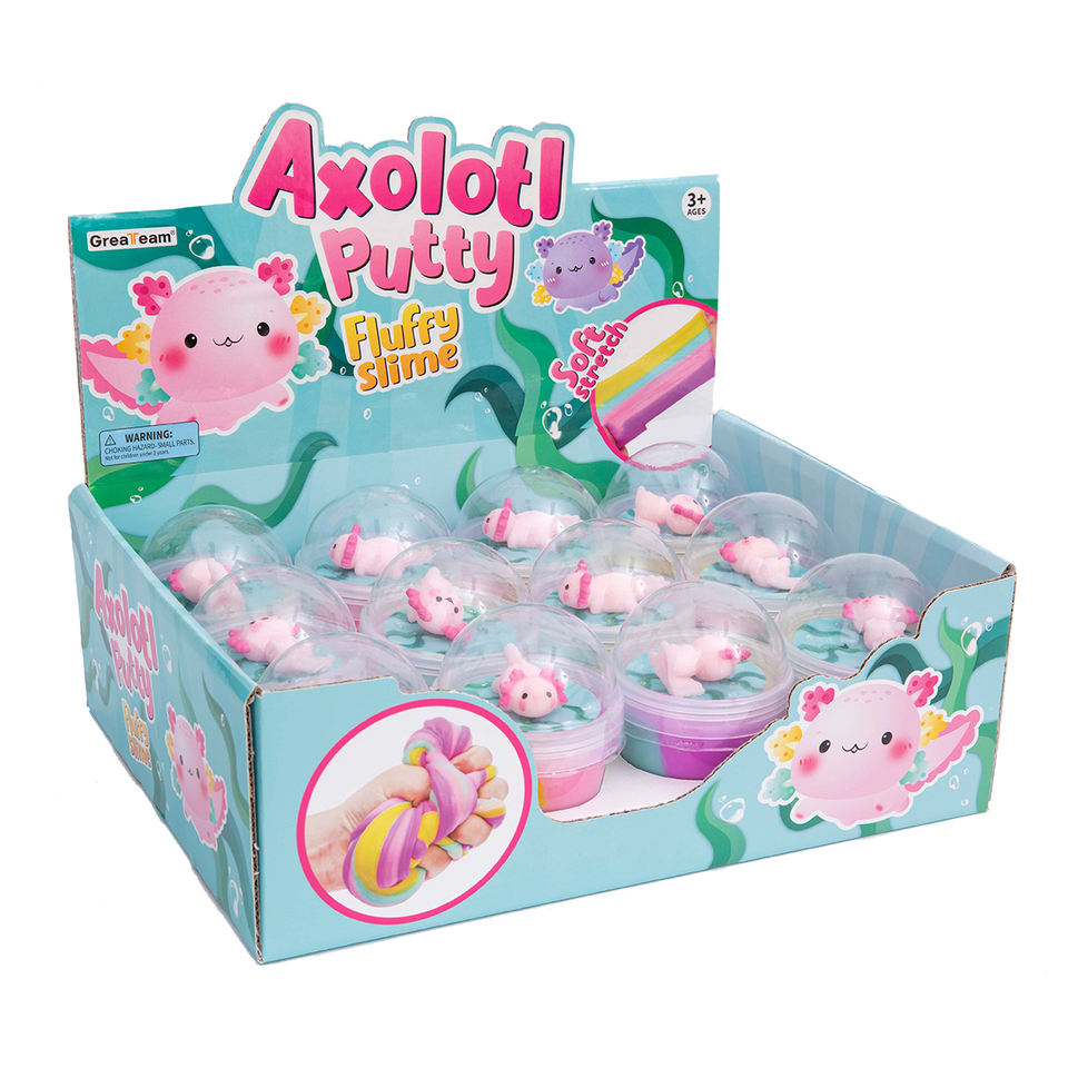 Wholesale Axolotl Putty Fluffy Putty Fluffy Slime in Pot with a Tpr Axolotl Inside Blister Lid