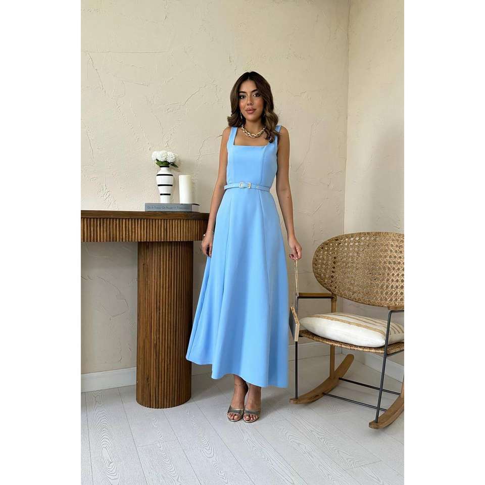 Wholesale Baby Blue Satin Evening Dress Long Ball Gown Belt Crocheted Empire Waistline Party Style XS Size Floor-Length Prom