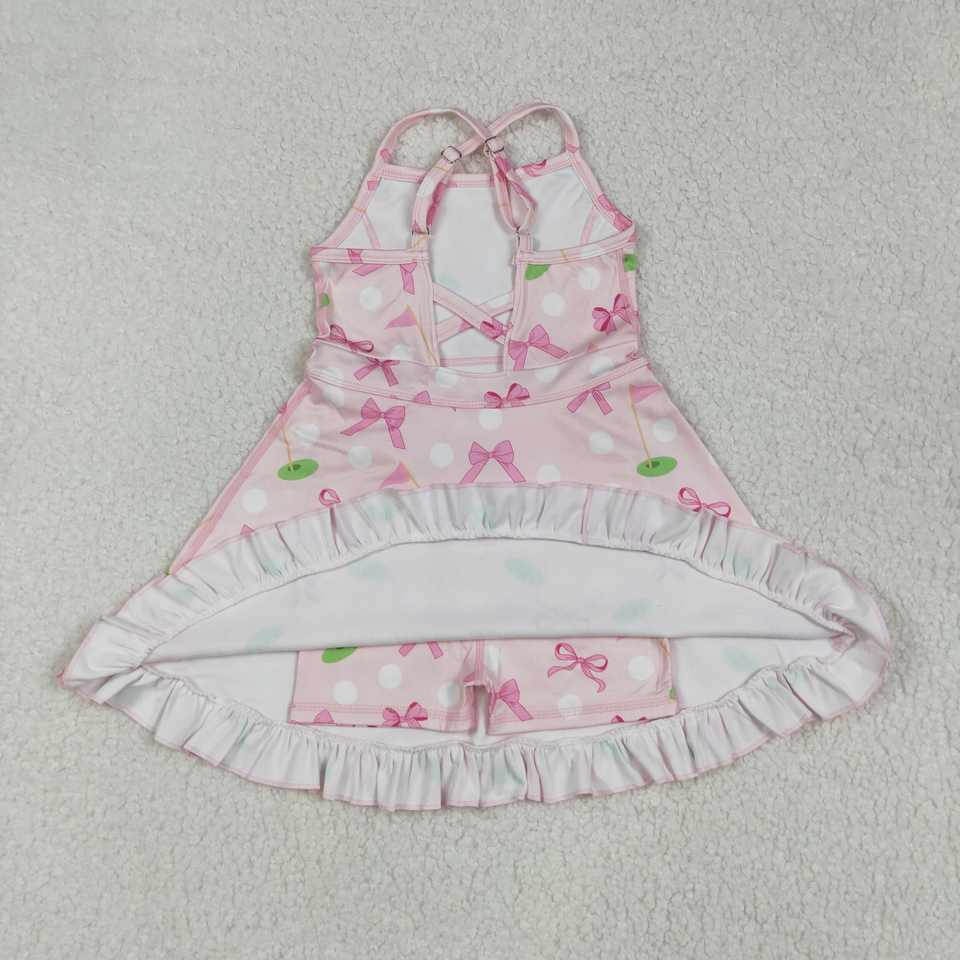 Wholesale Baby Girls Athletic Clothing Summer Casual Leopard Bow Print Strap Yoga Dress Ready to Ship with No MOQ