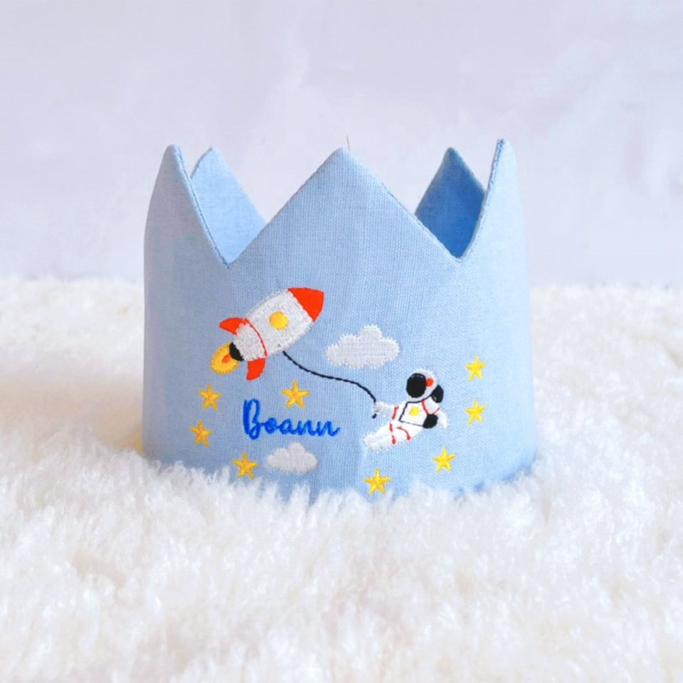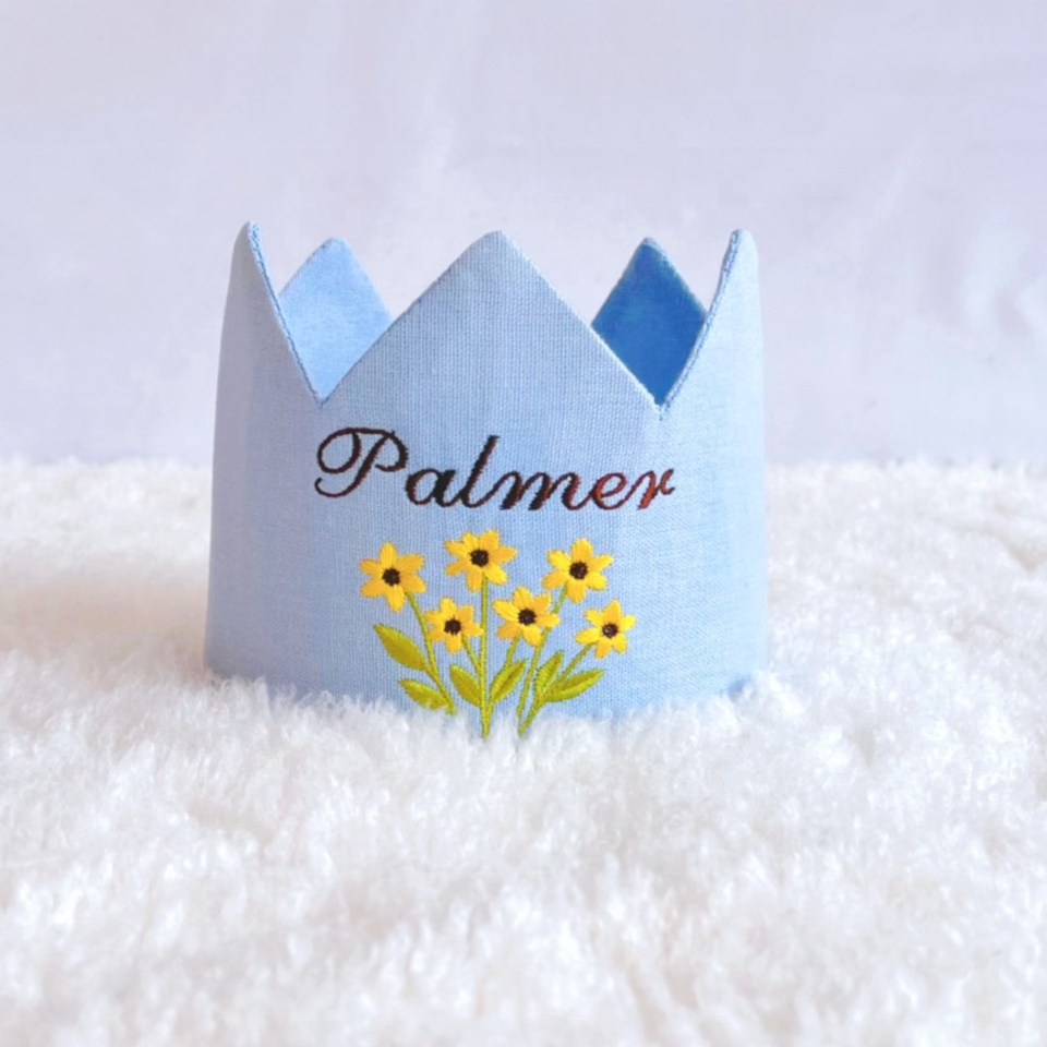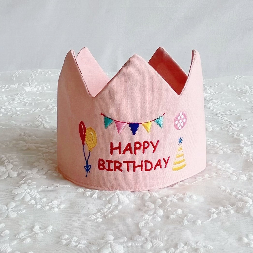 Wholesale Baby Kids Birthday Crown Embroidered Flowers Happy Birthday Cotton Headband for Ramadan Graduation