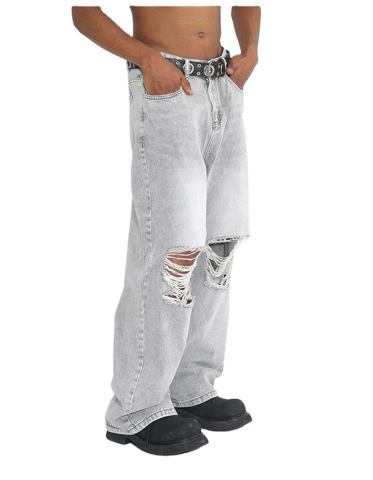 Wholesale Baggy Loose Fit Denim Jeans Quality Custom Ripped Denim Jeans Streetstyle Grey Jeans for Men