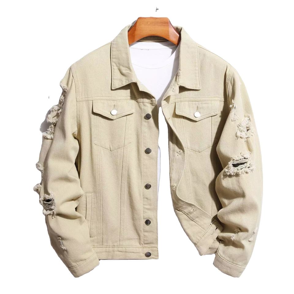 Wholesale Baggy Men Denim Jacket Long Sleeve Single Button Denim Cowboy Simple Jeans Jacket for Men