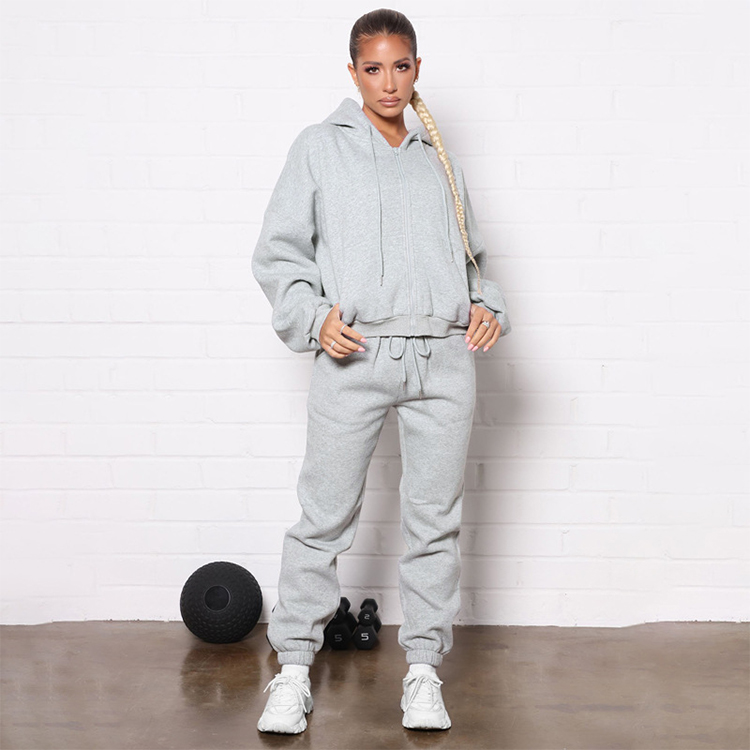 Wholesale Baggy Zipper Tracksuit Women Cotton Fleece Jogger Two Piece Sets Sports Running Pullover Hoodie and Sweatpants Ladies