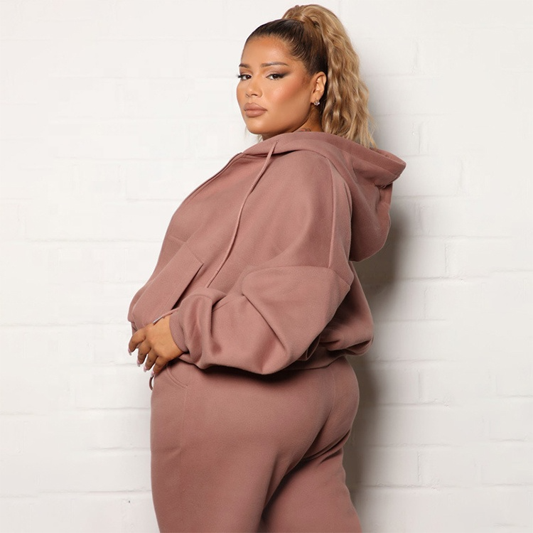 Plus Size Zipper Hoodie & Sweatpants Ladies