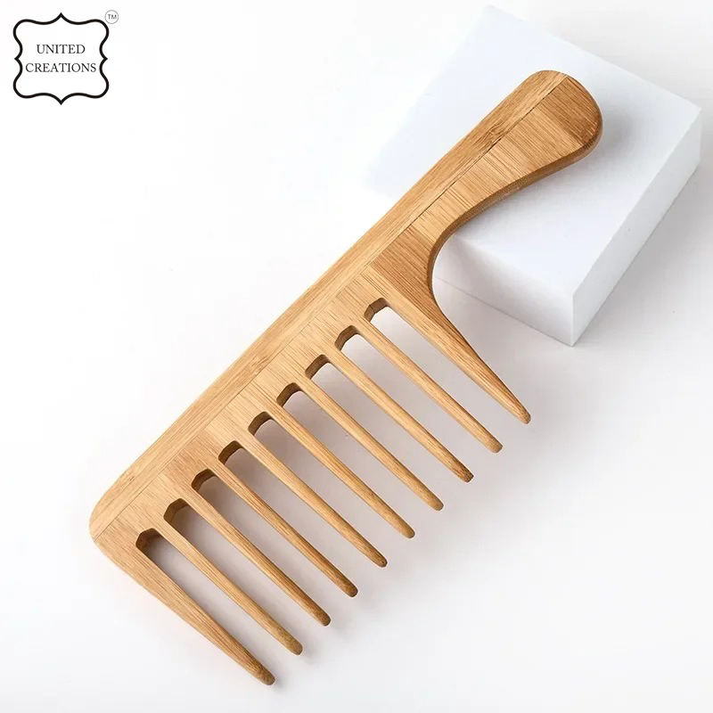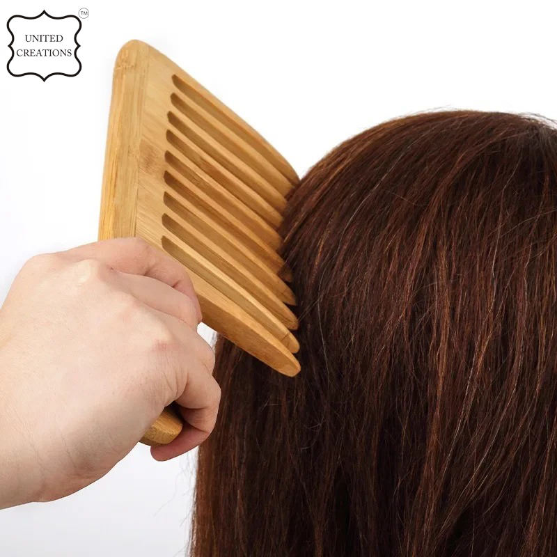Wholesale Bamboo Wood Wide Tooth Hair Brush Scalp Massage Paddle Detangler Hair Combs for Women Use at Home