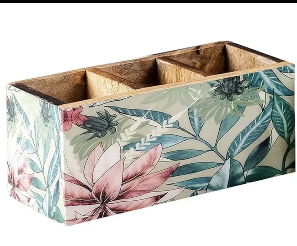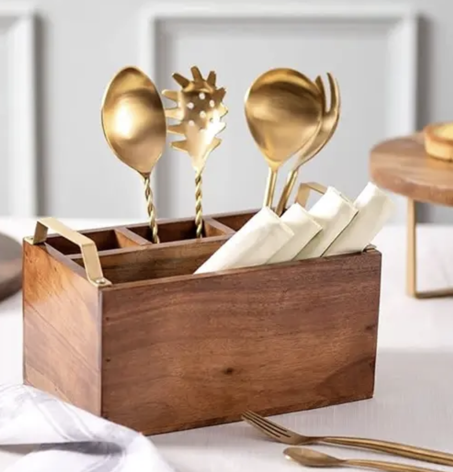 Wholesale Bamboo Wooden Organizer Restaurant Tabletop Spoon Cutlery Dining Utensils Holder 2 Compartment Kitchen Display Box