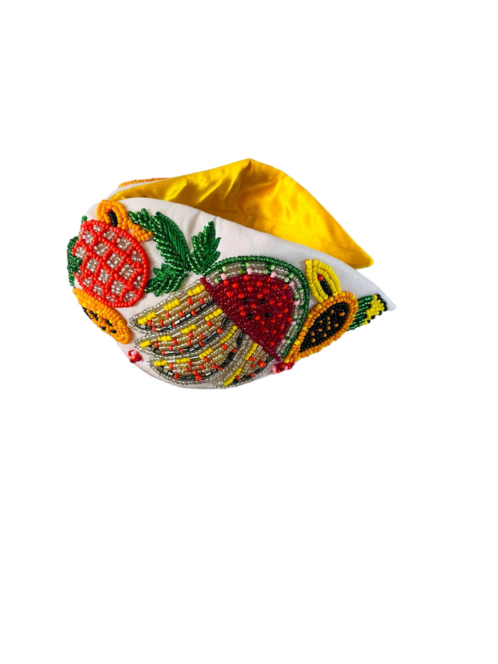 Wholesale Baroque Style Beaded Headband Customizable Multicolor Floral Embroidery Top Knot Turban Style