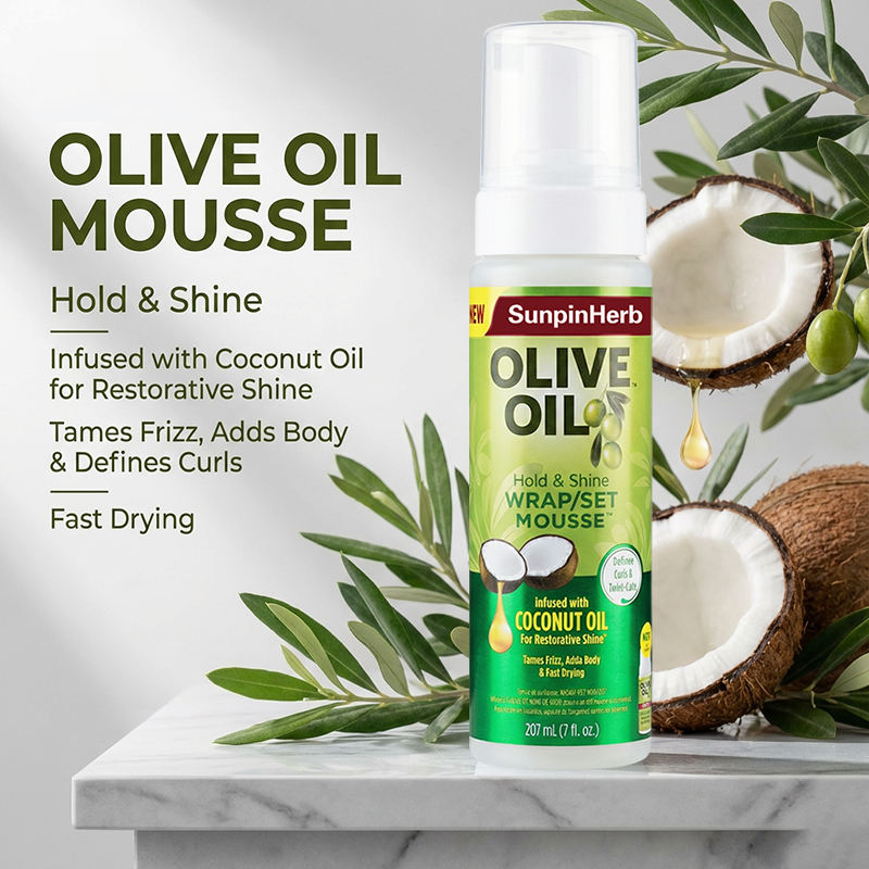 Wrap Set Hair Styling Foaming Mousse with Olive Oil Coconut Oil for Curl Definition Frizz Control and Natural Shine Finish