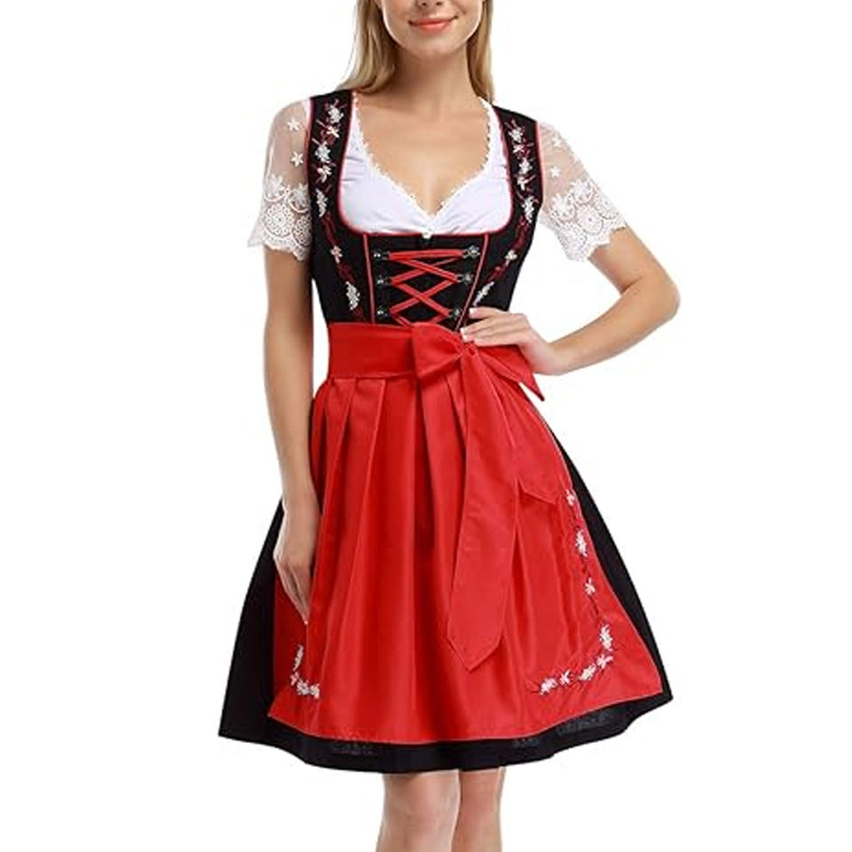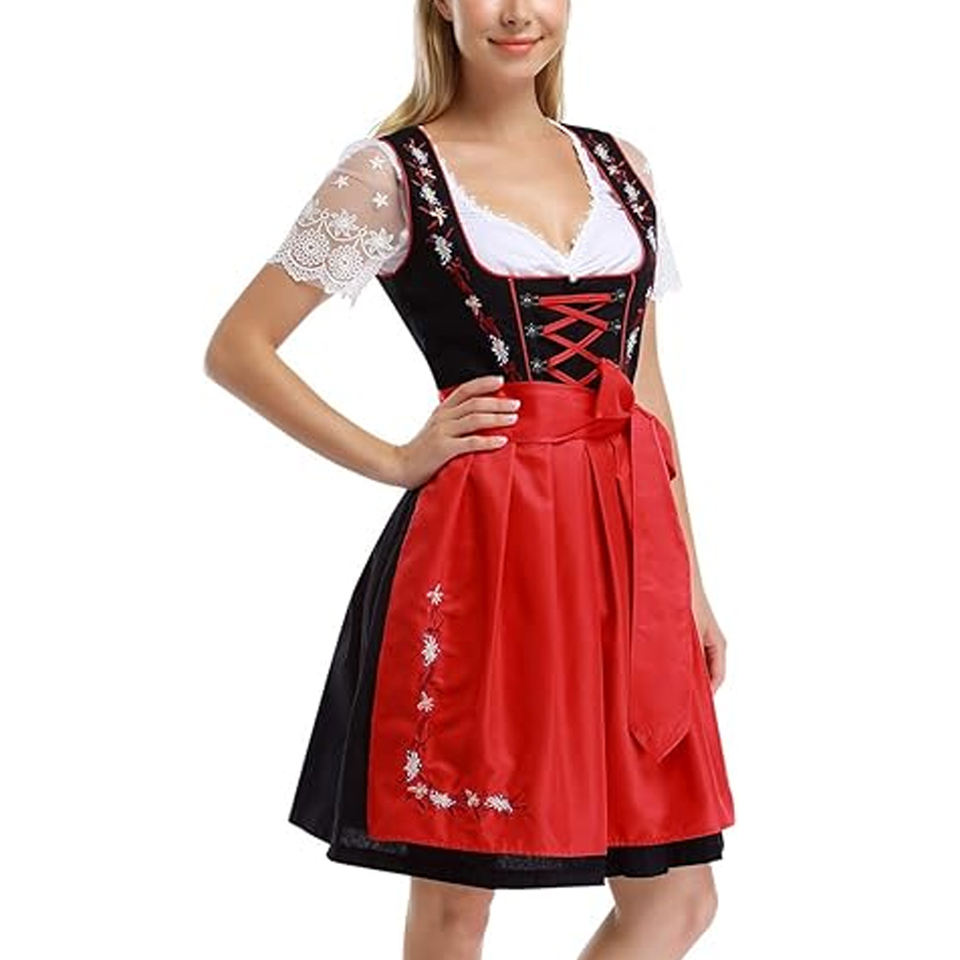Wholesale Bavarian Oktoberfest Adult Costume German Beer Wench Dirndl Dress with Apron Top Component for Festival Cosplay