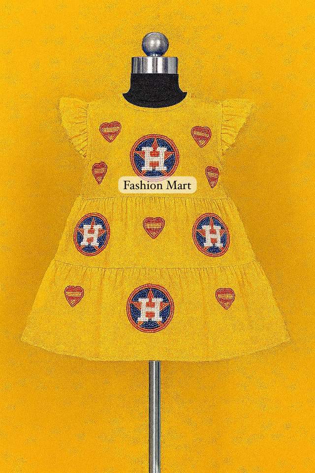 Wholesale Beaded Baby Girl Dress Sports Fan Kids Outfit Boutique Toddler Dresses