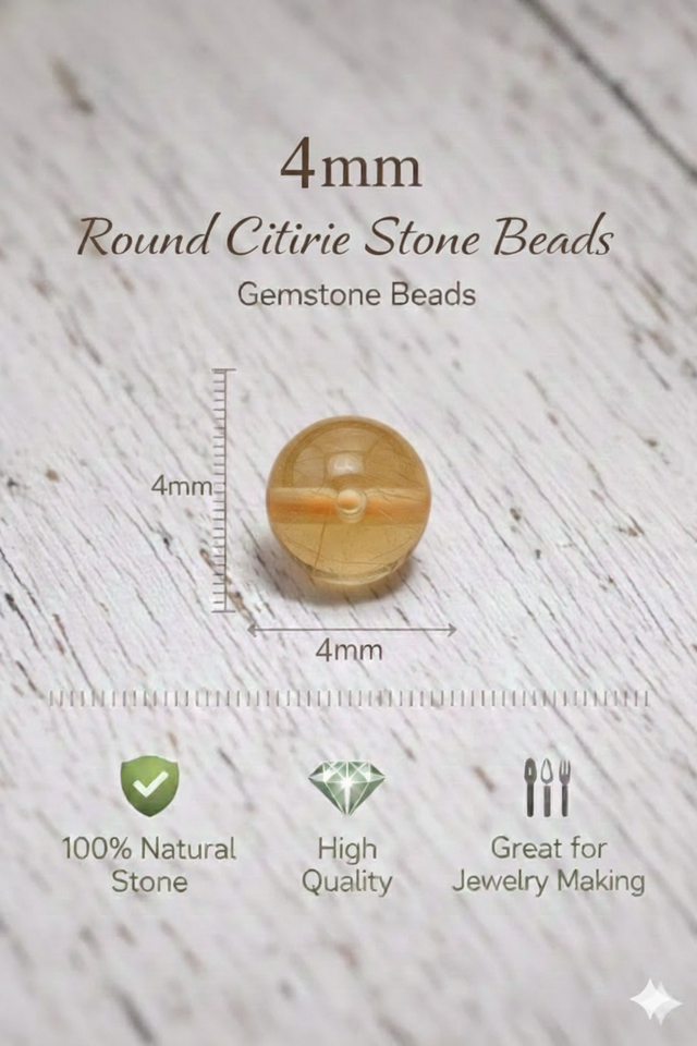 Wholesale Beadsnfashion 5mm Round Citrine Stone Beads Golden for DIY Jewelry Bracelet Necklace & Earrings Making