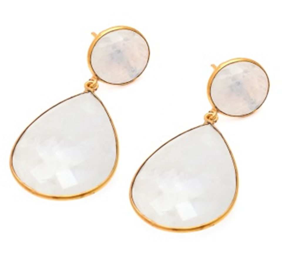 Wholesale Beautiful 925 Sterling Silver Earrings Natural White Rainbow Gemstone Top Indian Jewelry Featuring 18K Gold Diamond