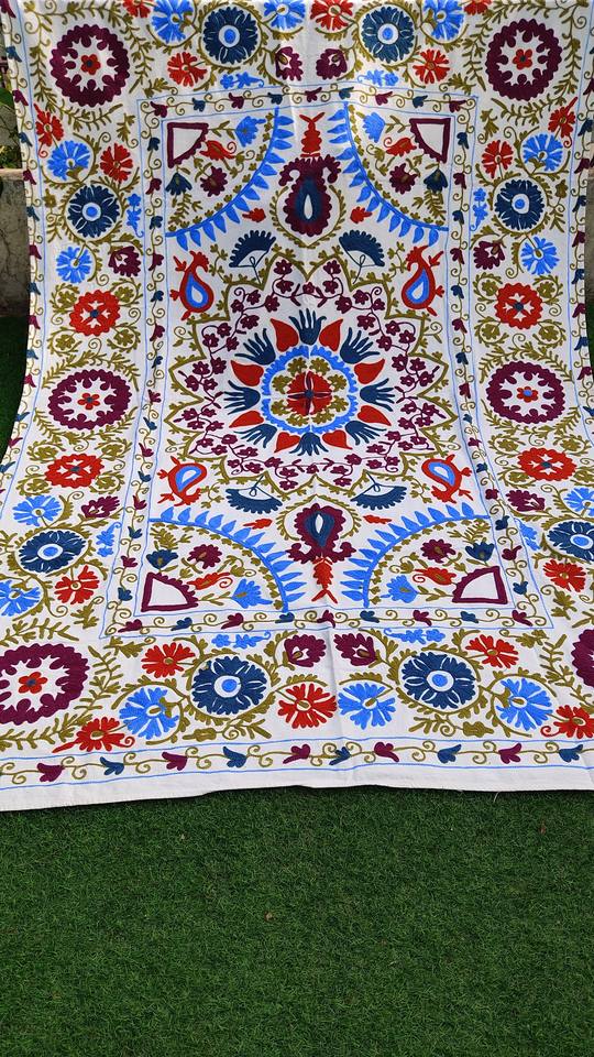 Traditional Uzbek Suzani Embroidered Bed Sheet