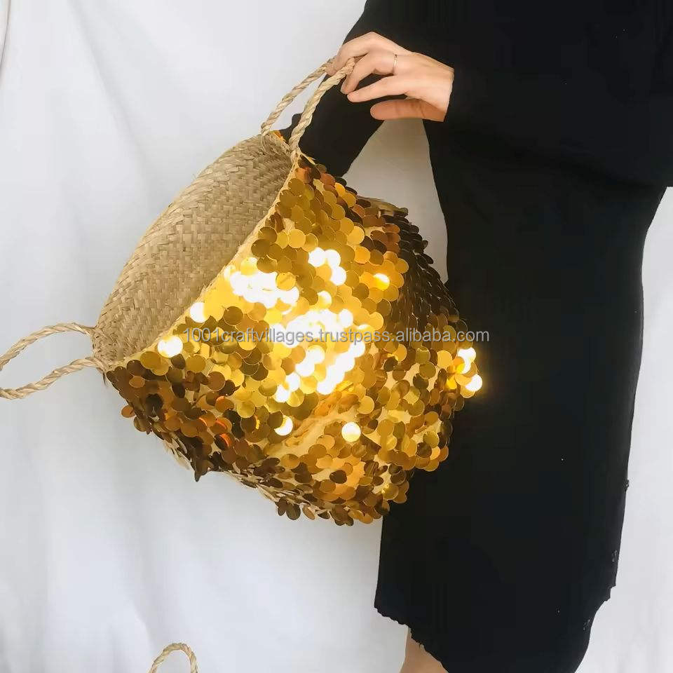 Wholesale Belly Basket Manufacturer Natural Handmade Seagrass Storage Bin for Retail Shop Supply Lightweight Customizable