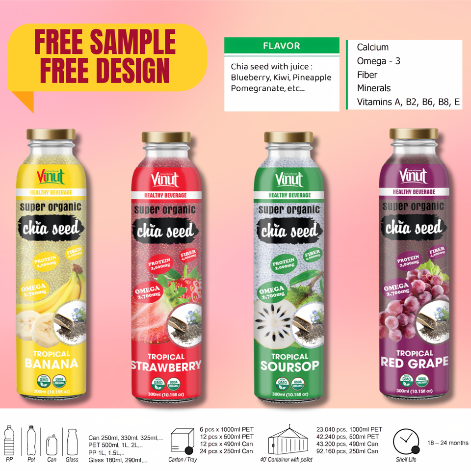 Wholesale Best Price Chia Seed Banana Juice Drink 300ml | Free Sample & Design, Private Label , Marketing Support, OEM/ODM