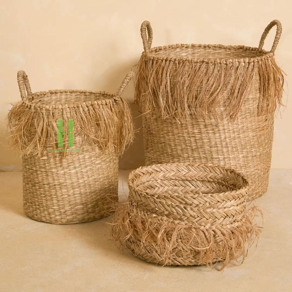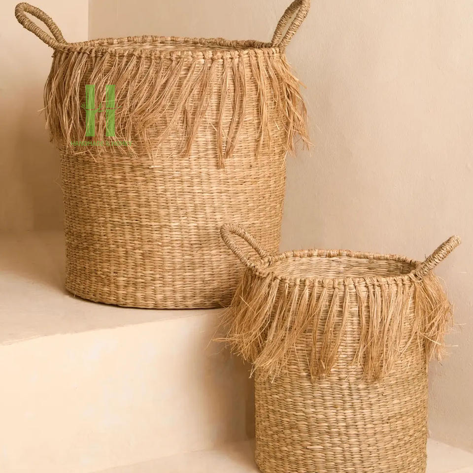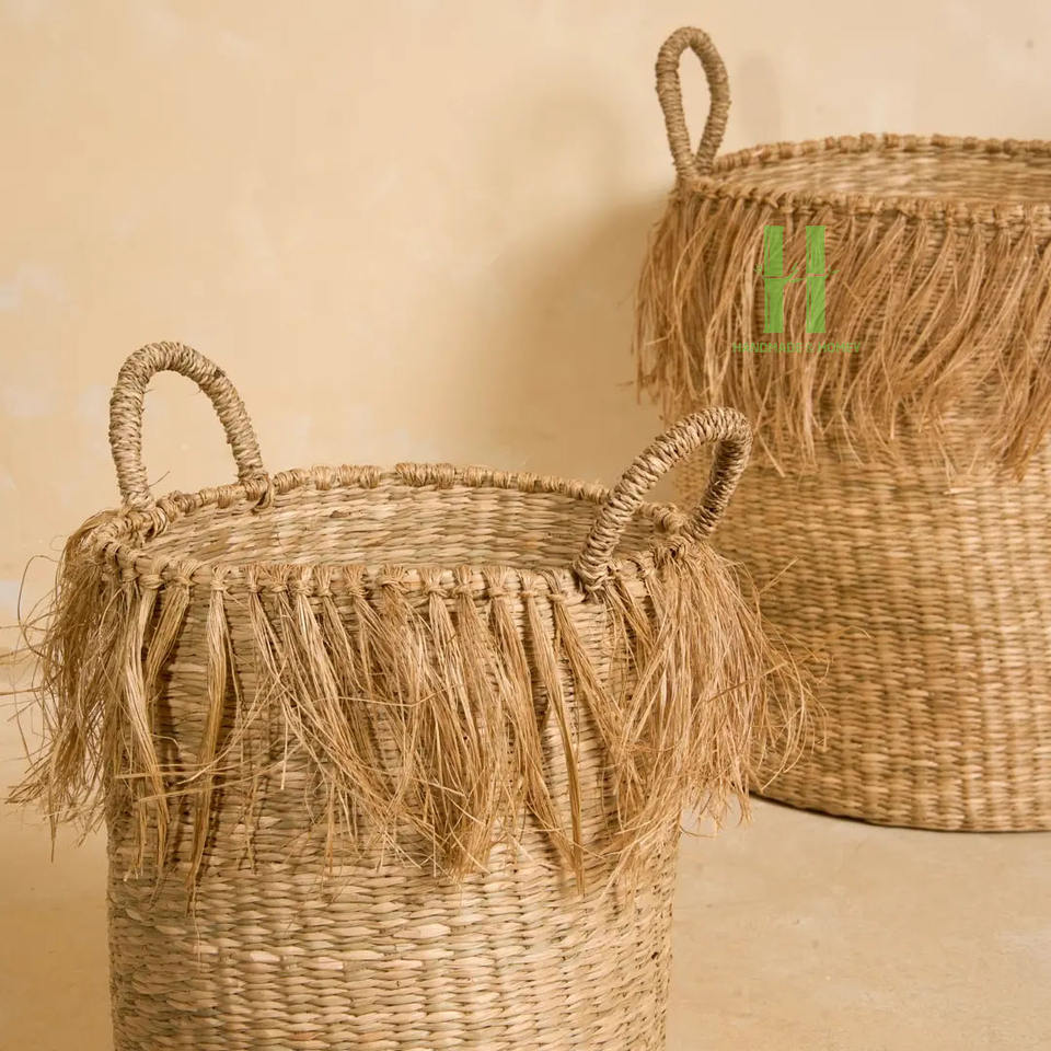 Wholesale Best Price Handmade Seagrass Storage Basket And Tall Seagrass Basket with Fringe Made In Vietnam