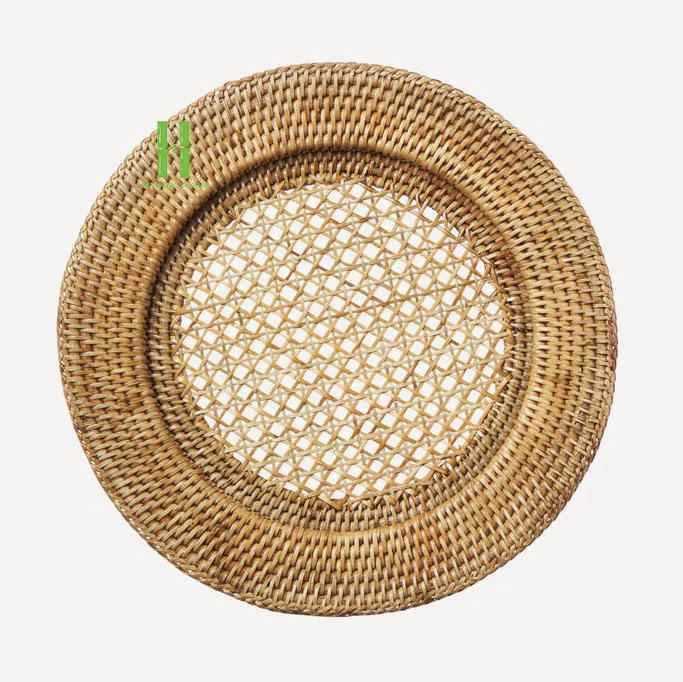 Wholesale Best Price Rattan Placemat Flower-Shaped Rattan Placemat Boho Hanging Wall Decoration Rattan OEM Charger Plates